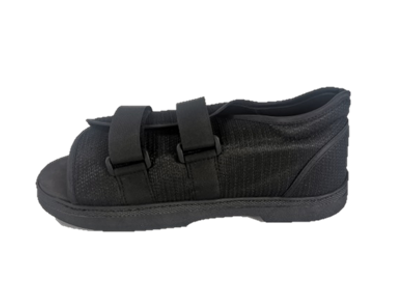The Post Operative Shoe with its famous semi-rigid sole is built around our forefoot support, that provides more rigid control and better protection after osteotomies. Our breathable upper conforms to bony abnormalities of the foot and has a reinforced heel counter and padded heel collar to stabilize the rear foot and re-duce slippage. Extra-long straps accommodate even the bulkiest dressings.